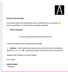 Já passei por fases em que meu celular vibrava sem parar: clientes querendo saber atualizações, mesmo quando não havia novidade no processo. Isso não é apenas desgastante — também tira o foco do que realmente importa: atuar de forma estratégica nos processos.